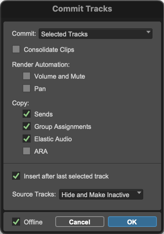 -a) Please Commit Tracks (Option-Shift-C) using the following settings: